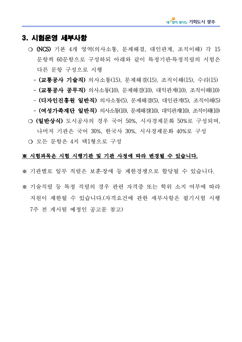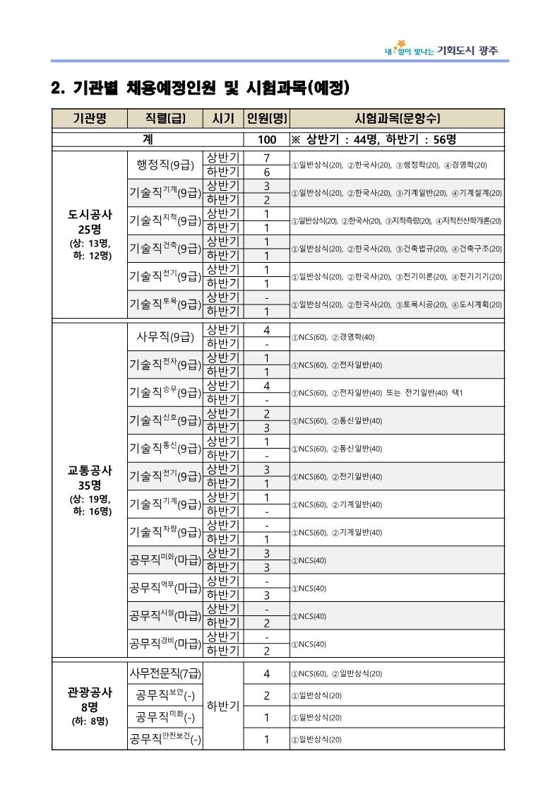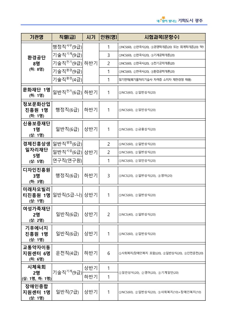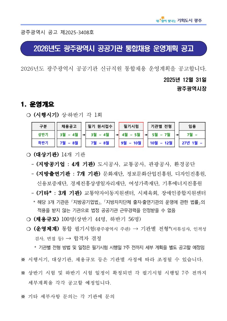 2026년도 광주광역시 공공기관 통합채용 운영계획 공고