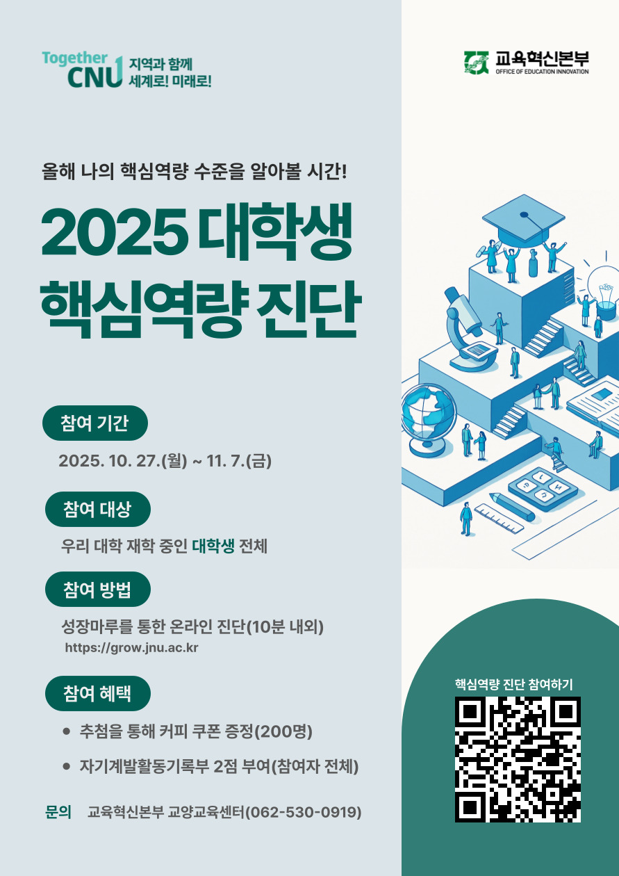 ※ [성장마루]→[통합진단]→[핵심역량진단](https://grow.jnu.ac.kr/ko/diag/essential)