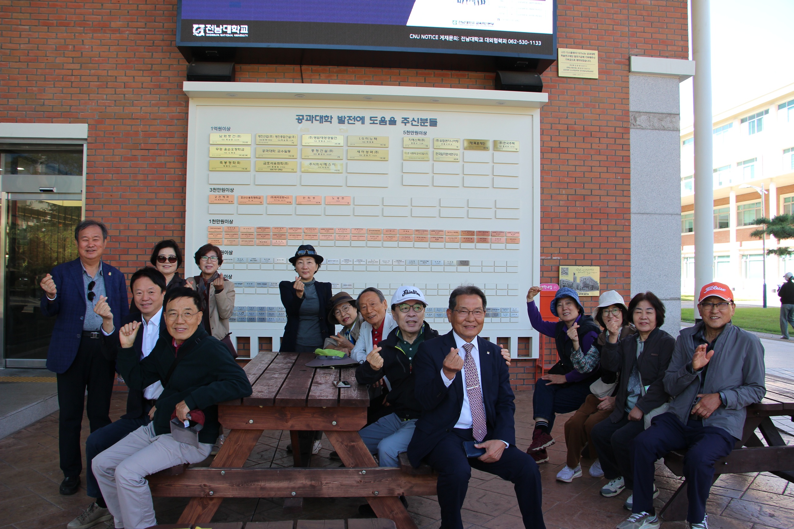 우리 공과대학 70학번 동문 모임인 용우회 회원들이 10월 20일 모교를 방문해 공과대학에 발전기금 천만원을 전달하는 뜻깊은 행사를 가졌다. 이날 우리 대학교 정문에 모인 용우회 회원 15명은 5∙18연구소 김형주 교수의 해설과 함께 1시간 동안 교내 민주길을 탐방하며 학창시절을 회고하는 시간을 갖고, 공과대학 학장실로 이동해 모교 발전기금 전달식을 진행했다.